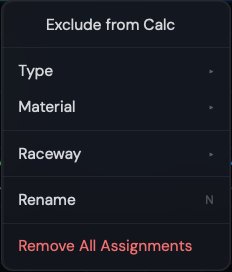 Raceway dropdown — Default (auto-calculated single or multi-line), No Raceway, or Custom (use your drawn measurements).
