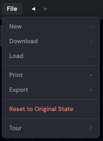 Clears the current project and returns to the upload screen so you can load a new DXF. If you have unsaved work, you'll be warned before clearing.